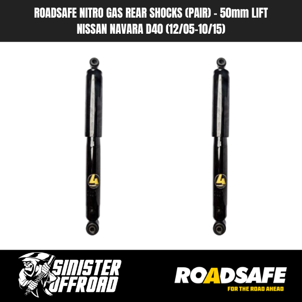 ROADSAFE NITRO GAS REAR SHOCKS (PAIR) |NISSAN NAVARA D40 (12/05-10/15) 50mm LIFT