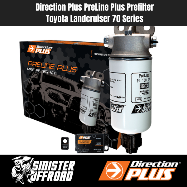 Direction-Plus™ PreLine-Plus PL648DPK is an innovative pre-filter system for diesel fuel which is designed and engineered in Australia to suit: Toyota Landcruiser 70 series 1GD-FTV 2.8L 4cyl (2023 – On) models . Driver side mounting location.
