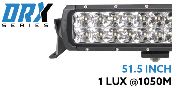 Our all new DRX SERIES 51.5" Inch is the result of our proven experience in delivering high performance LED lighting. Fitted with 100 of OSRAM’s® finest DURIS® LEDs and a combination reflector the DRX series produces a remarkable beam that pushes the flood beam out at 50° and spot beam at 5° all the way to whopping 1,050m @ 1 LUX