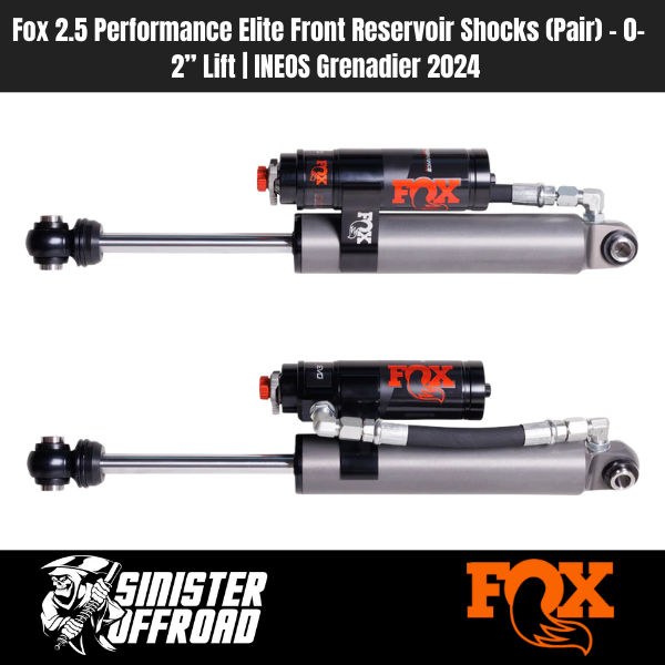 Fox 2.5 Performance Elite Series Adjustable Reservoir Front Shocks (Pair) | 0–2 Inch Lift (INEOS Gre