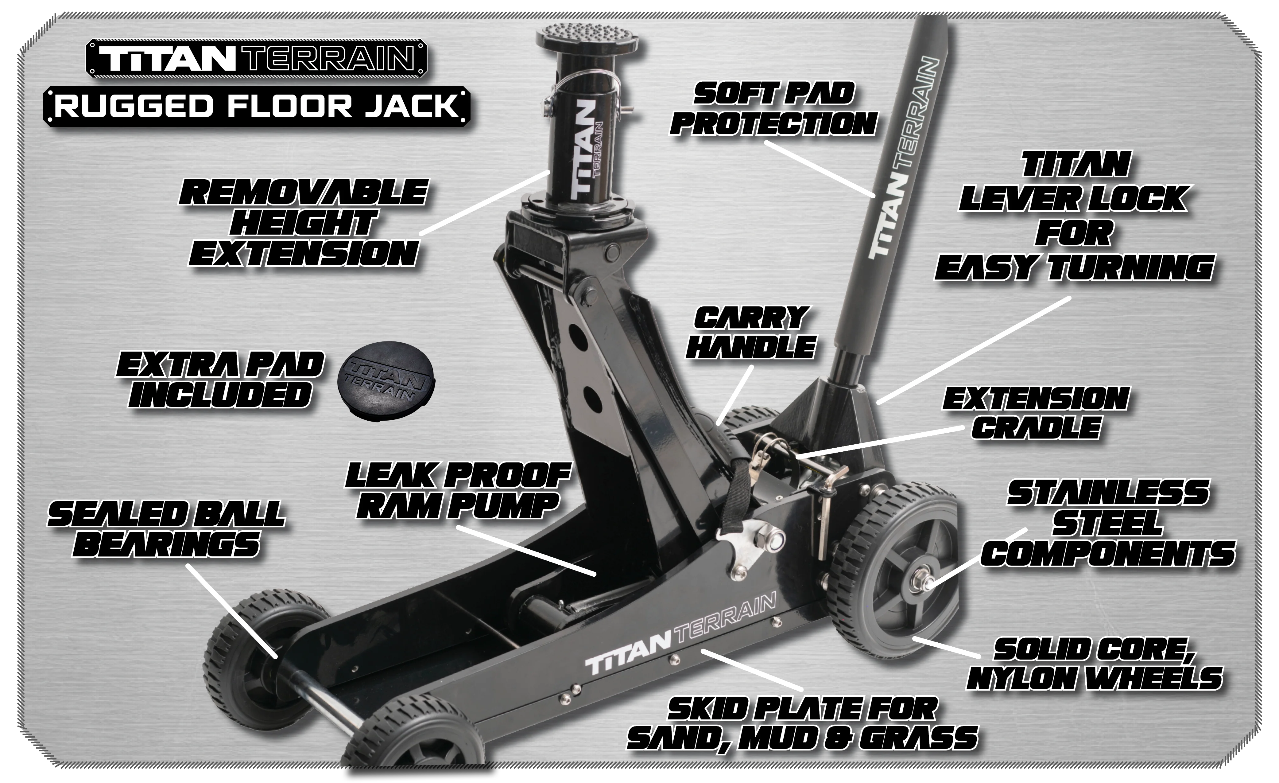 Titan Terrain Rugged 3T Floor Jack - The World's Most Versatile Floor Jack