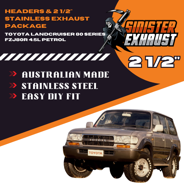 TOYOTA LANDCRUISER 80 SERIES FZJ80R 4.5L PETROL, HEADERS & 2 1/2" STAINLESS EXHAUST PACKAGE